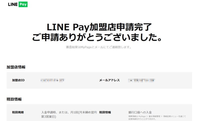 これで LINE Pay 加盟店申請が完了・・・したと思います: