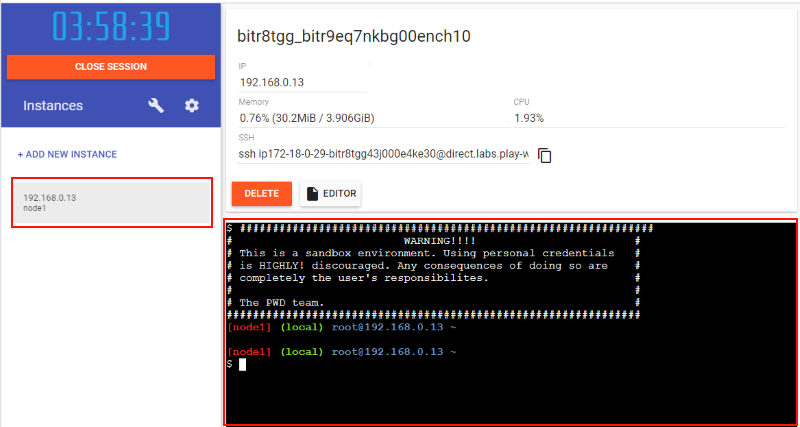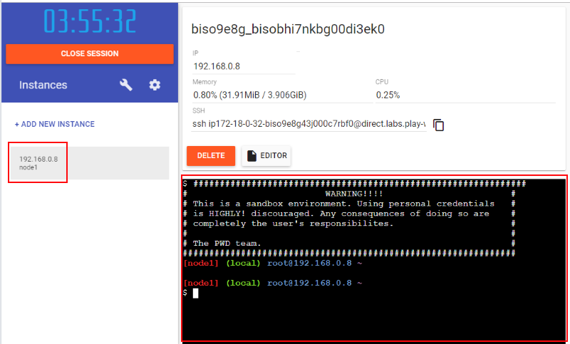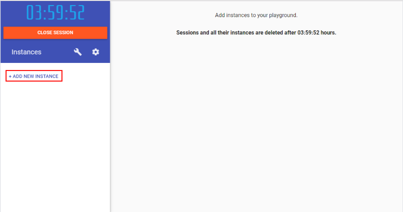 PwD のダッシュボード画面が表示されます。まずは前回同様に "+ ADD NEW INSTANCE" をクリックして Docker インスタンスを追加します: