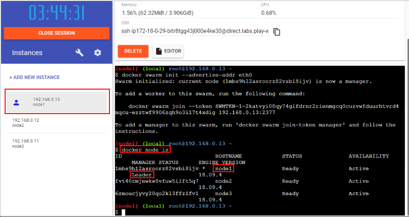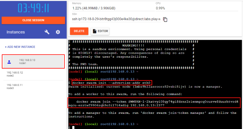 $ docker swarm init --advertise-addr eth0