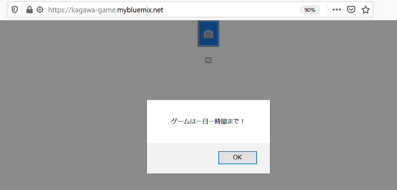 利用者(=あなた)が香川県以外からアクセスしていた場合、以下のような画面になり、そのままゲームを遊ぶことができるようになります。ゲーム自体はカメラアイコン部分をクリックして、PC内に保存されている画像を選びます:
