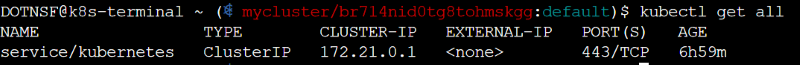まず Web 端末で "kubectl get all" を実行して、ポッドやサービス、デプロイメントの情報を確認します: