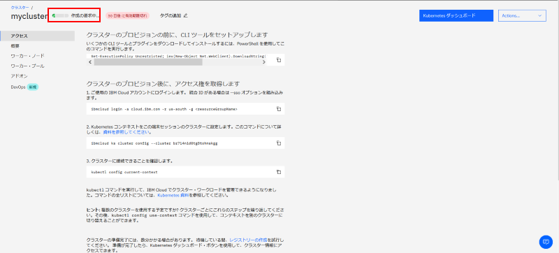 ここから IKS 環境の作成が始まります。操作できる状態になるまでしばらく(数10分程度)かかります: