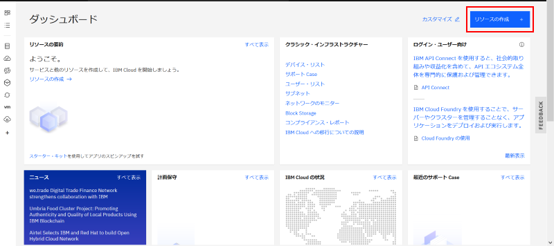 BASIC アカウントでログイン後、画面右上の「リソースの作成」ボタンをクリックします: