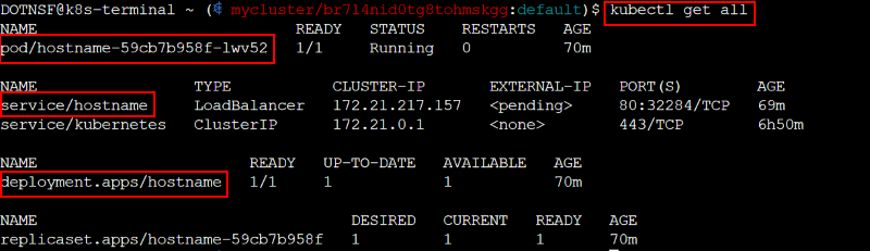 最後にもう一度 "kubectl get all" を実行して、hostname 関連のものが残っていないことを確認します: