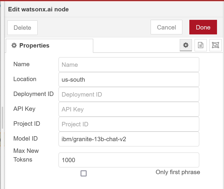 というわけで改めて、WatsonX.AI 用 Node-RED カスタムノードがチューニング済み LLM にも対応できましたので、よかったら使ってください: