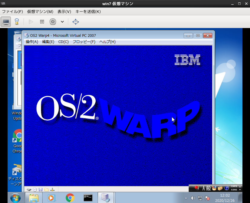 OS/2 環境も同様に KVM 環境下の Windows7 内 Virtual PC で動作させることができるようになりました: