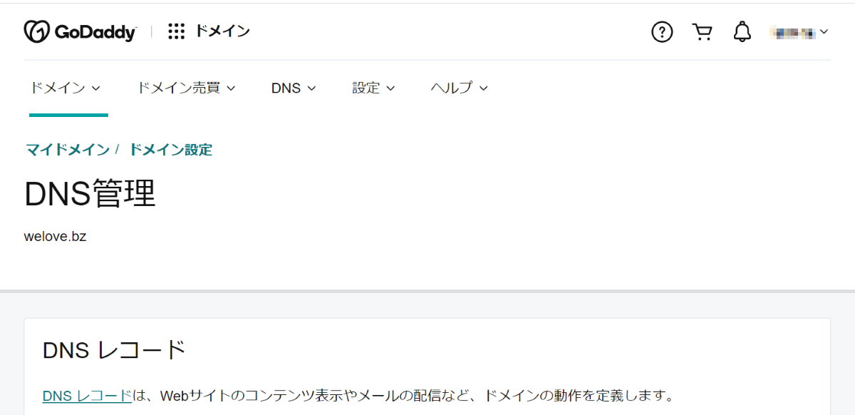 具体的には対象ドメインの MX レコードを編集します。またメールサーバーを mail.welove.bz のような名称にしたい場合は合わせて CNAME レコードも編集します。 というわけで、対象ドメインの DNS 管理画面に移動します: