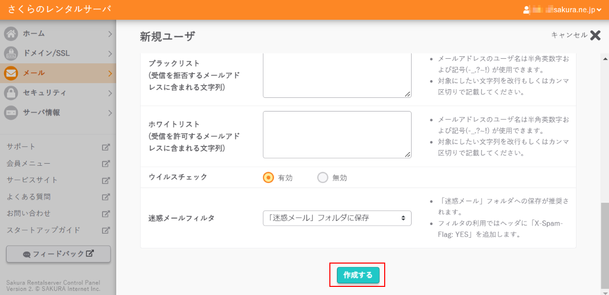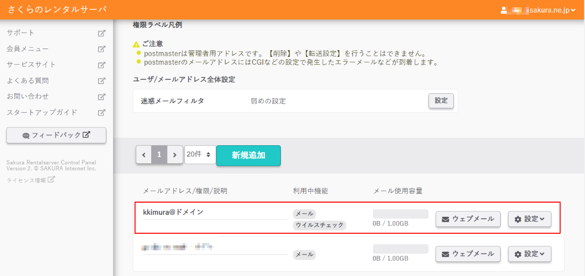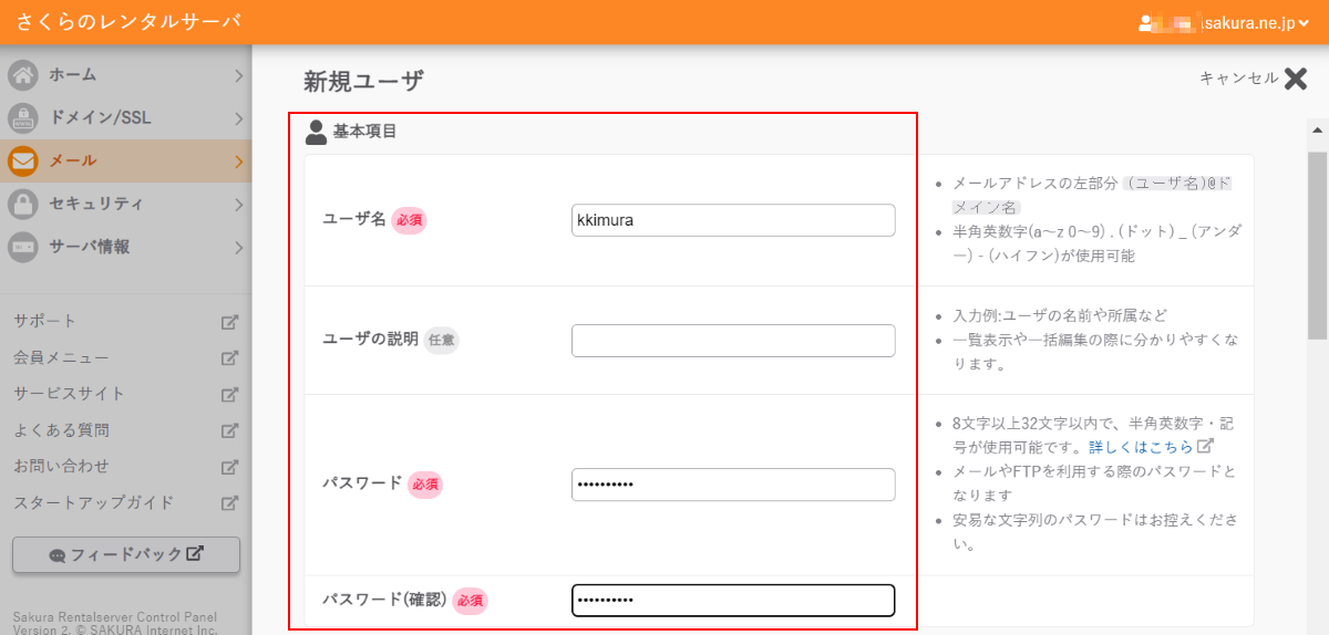 【「さくらのメールボックス」へのユーザー追加】