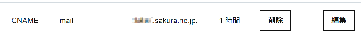 ホスト名: mail (メールサーバーを mail.対象ドメイン名 にしたい場合) TYPE: CNAME VALUE: xxxxx.sakura.ne.jp(初期ドメイン名) 状態: 有効